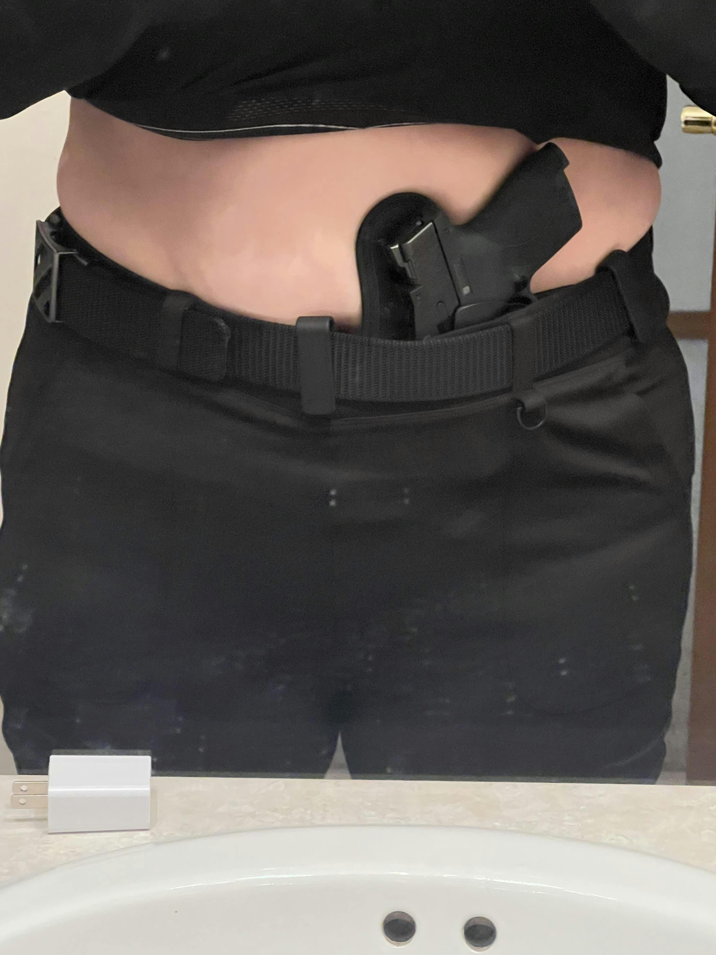 I finally found a comfortable IWB holster! I have it on the right side appendix carry position and it fits perfectly. My draw is quick and smooth. Thank you Alien Gear for making something that works on a woman’s body!