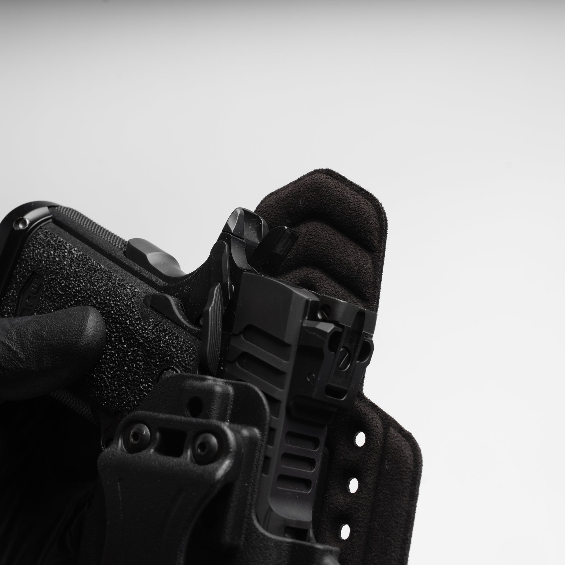 The Photon Backer flexes naturally with your movement, staying comfortable whether you’re sitting, standing, or active. It integrates flawlessly with the Photon Holster shell — maintaining full retention and draw performance while adding unmatched comfort and protection.