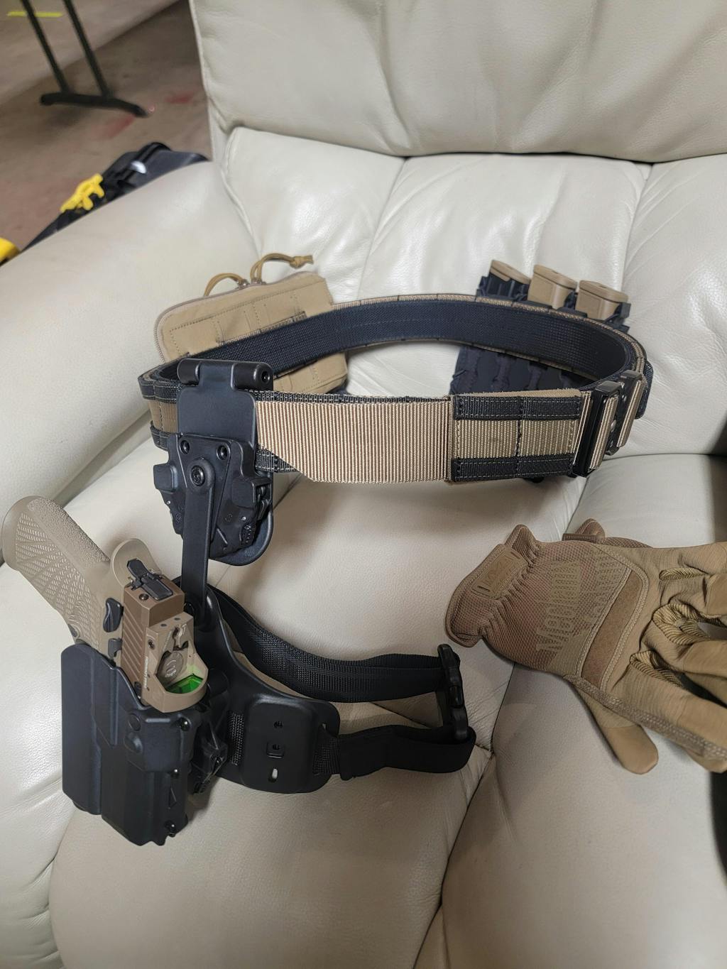 Really well made, comfortable drop leg with adjustable ride height. Design moves with you in any position and the modular design allows quick swaps between belts and holsters. Comfortable and fairly priced. Awesome product.