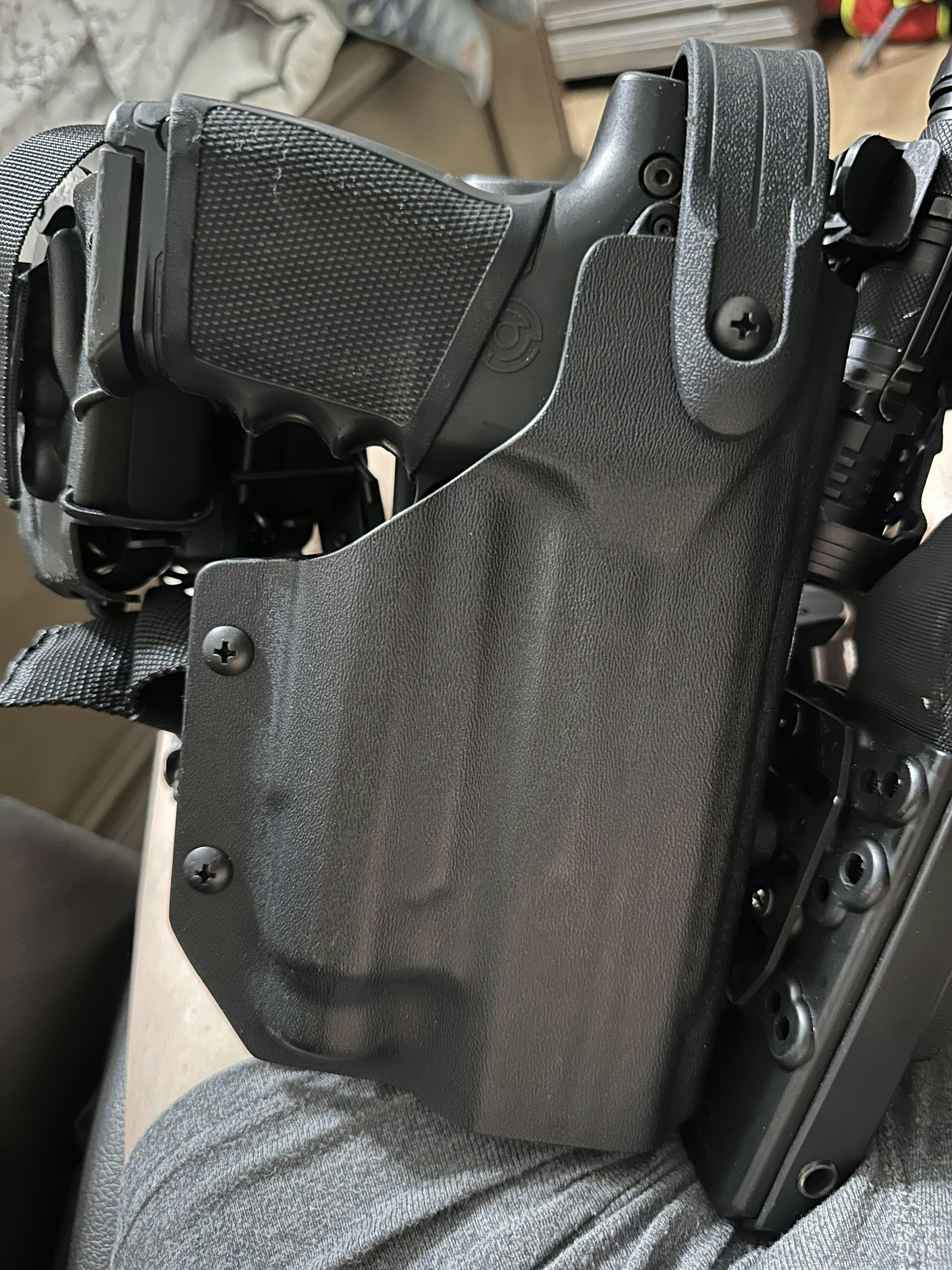 I like your holsters a lot they look very, very tactical and very, very durable. Why can you not make me a right handed Kydex level three or two for duty? I’m a motor officer. I wore it on the right side as a drop, but I would prefer to carry your holster instead it has a crimson trace light attached to itis. Is there any holsters there that you have then can accommodate the burn up LE it would really really help me out a lot. Bryna LE